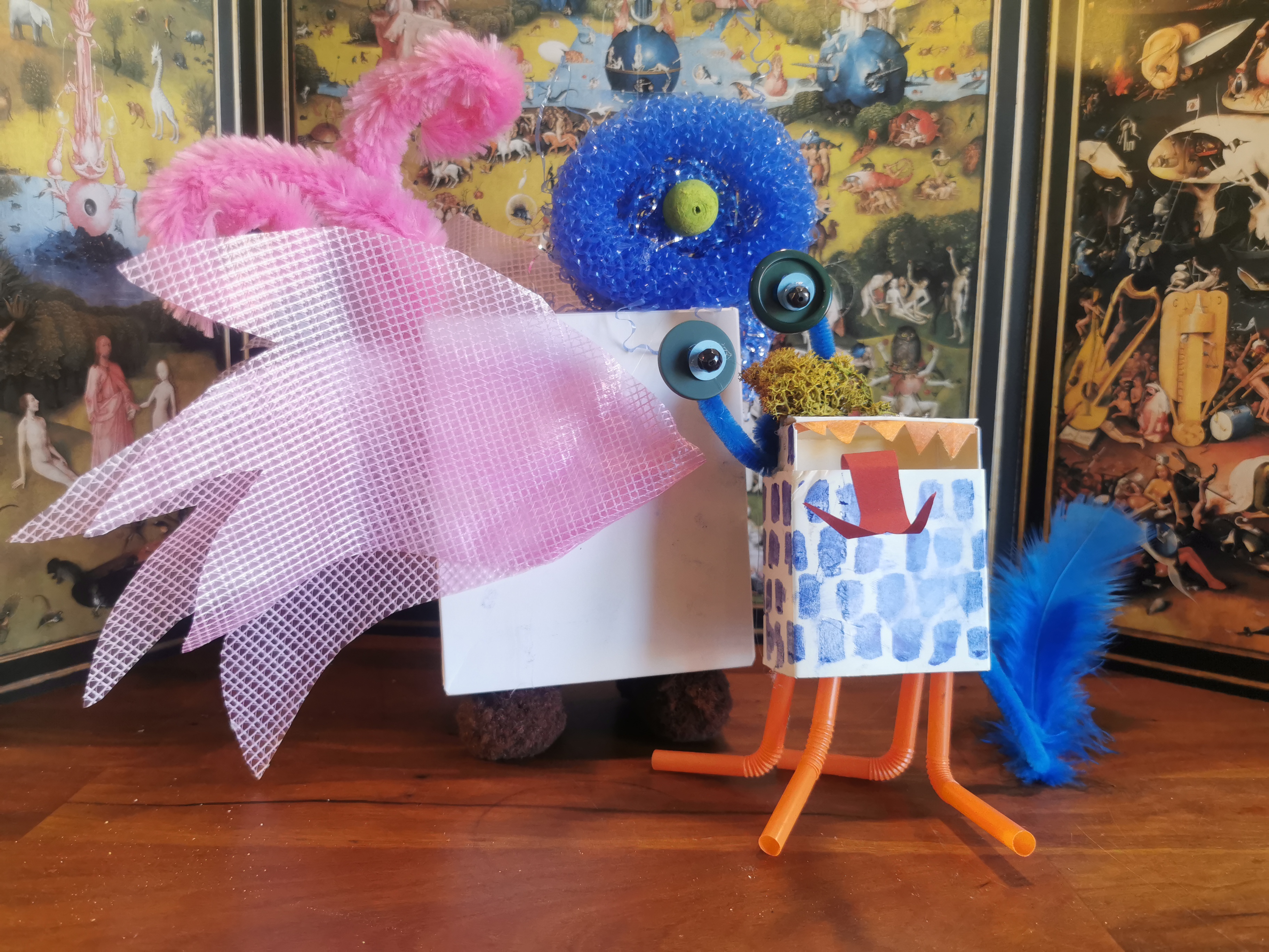 Jordbærengle, kyssegrise og blomsterpruttere. Det er nogle af de mærkelige væsner, som maleren Hieronymus Bosch opfandt. Sammen med kunst- og kulturformidler Maren Grosen tænker vi ud af boksen og laver vores egne, fantasifulde Hieronymus Box-væsner ud af skøre materialer.