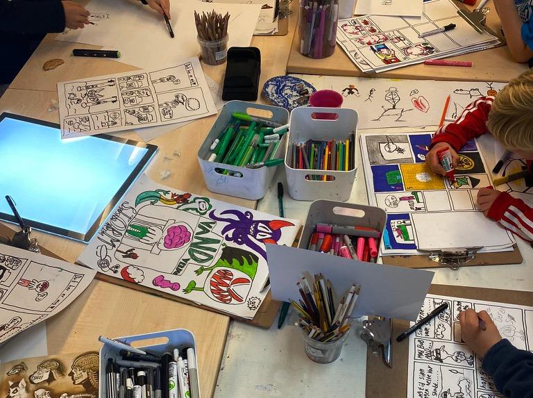 Kom og dyk ned i tegneseriernes fantastiske verden! På denne drop-in workshop inviterer vi både børn og voksne til at skabe deres egne tegneserier sammen. En tegneserie kan være en vittighed, en meme, en historie fra jeres eget liv, eller en fantasibombe af gode ideer. På dagen kan I finde inspiration til alt fra format, talebobler og få hjælp til at skabe jeres egen tegneserie. Her er plads til både fordybelse og sjov.